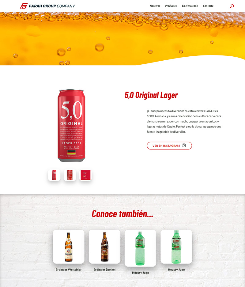 We have developed a comprehensive website for Farah Group Company, a distributor of brands such as Erdinger, Cihuatán, Saka, Houssy, Cavalier, 3X Energy Drink, and the successful 5.0 beer.