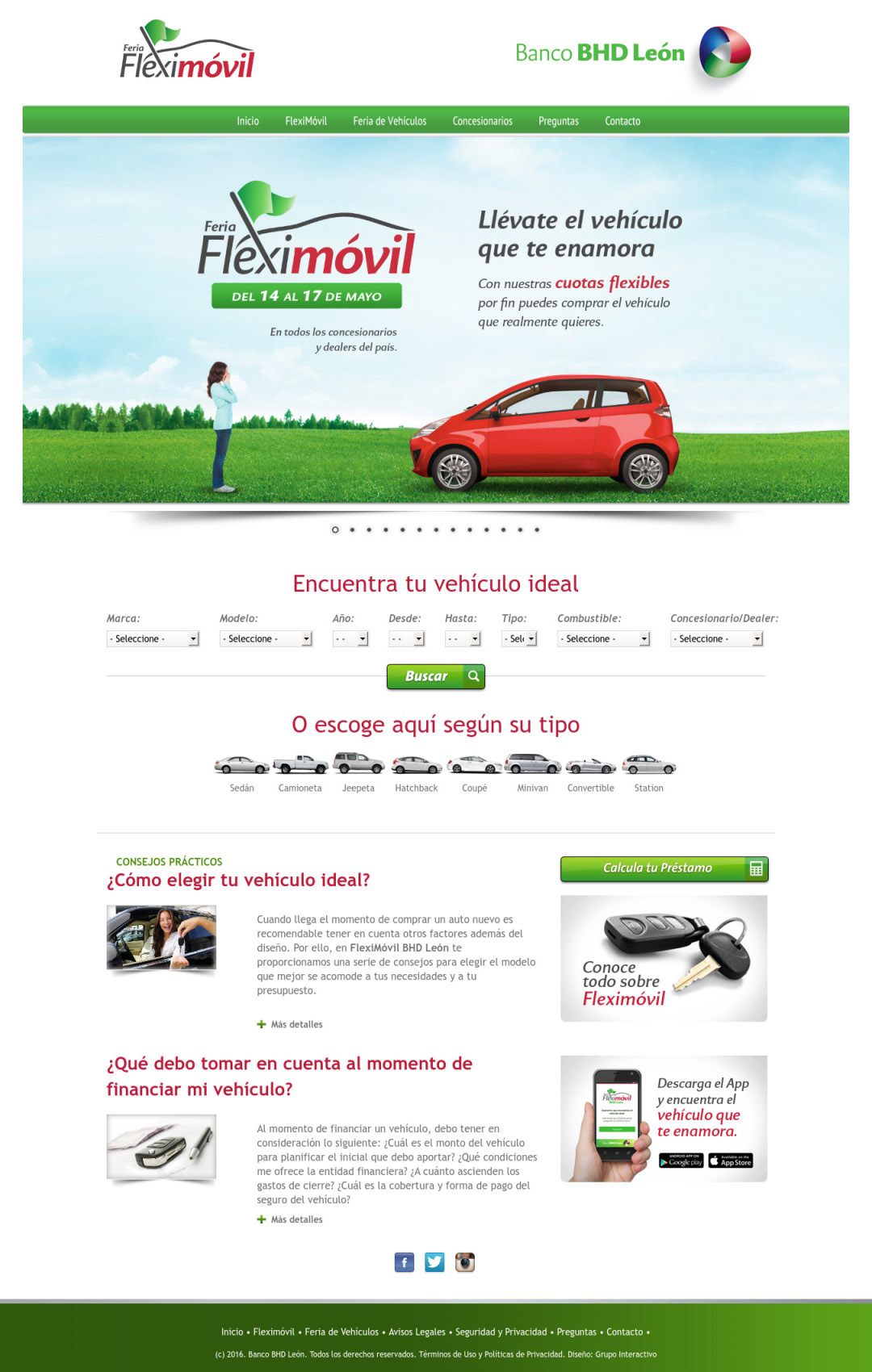 La plataforma web del producto Fleximóvil del Banco BHD León fué diseñada mediante las últimos conceptos de diseño de interfaces para una óptima experiencia del usuario.