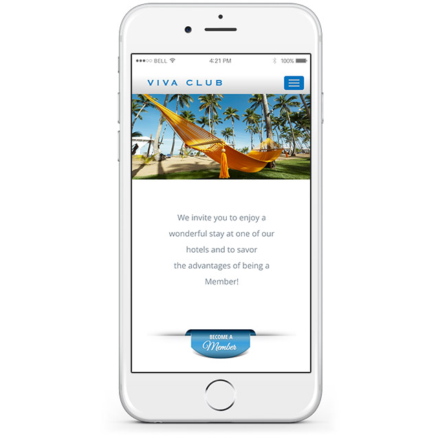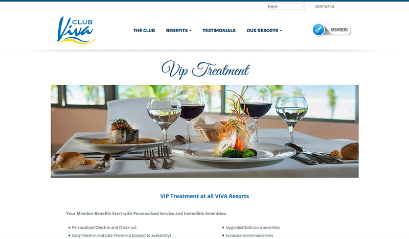 Un website orientado a presentar toda la información que necesita el interesado en disfrutar de una experiencia vacacional superior con Club Viva y el acceso a las información preferencial de los miembros actuales.