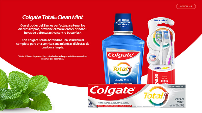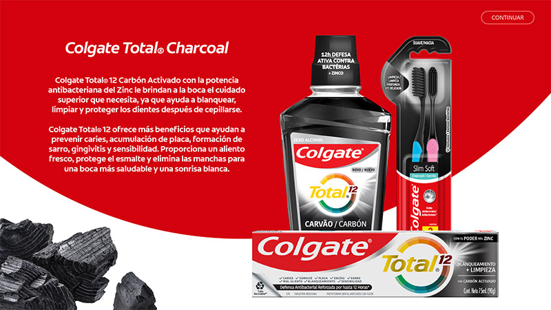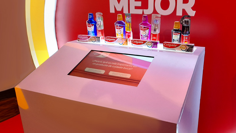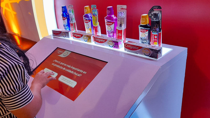 En 2024 la marca Colgate presentó a sus canales de venta los nuevos productos para el cuidado de la salud bucal mediante una aplicación interactiva diseñada para mostrar las variantes de productos específicas para cada necesidad del consumidor mediante un stand con pantalla táctil.