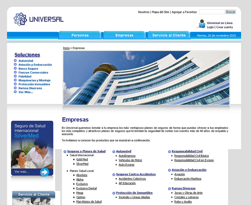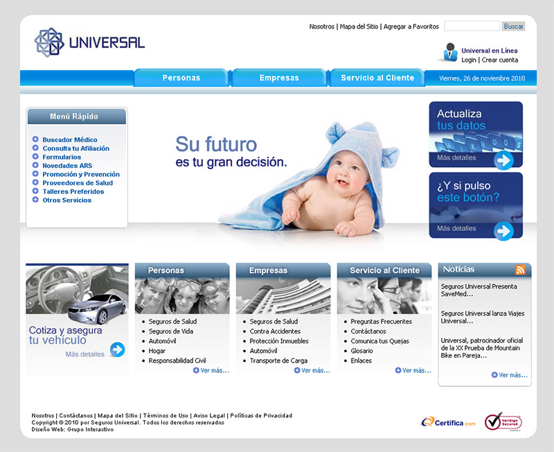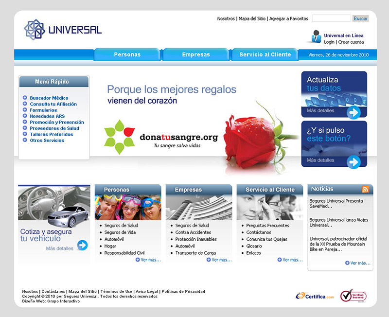 Website corporativo del grupo empresarial Universal, líder en la República Dominicana en innovadoras soluciones del sector seguros.